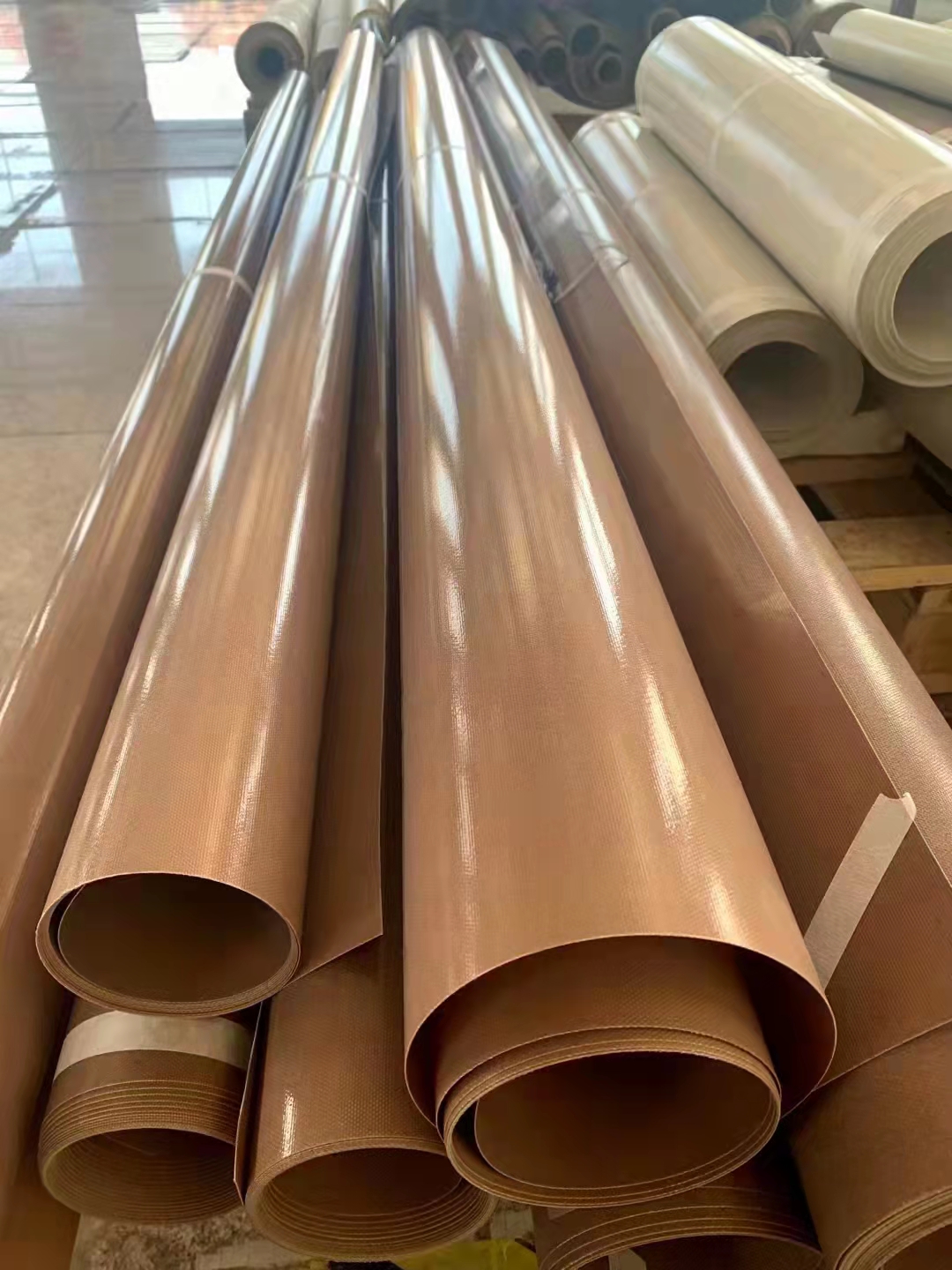 6、粘合帶,轉(zhuǎn)移印花燙臺(tái)布,地毯背膠固化輸送帶,橡膠硫化輸送帶,磨料片固化離型布等。