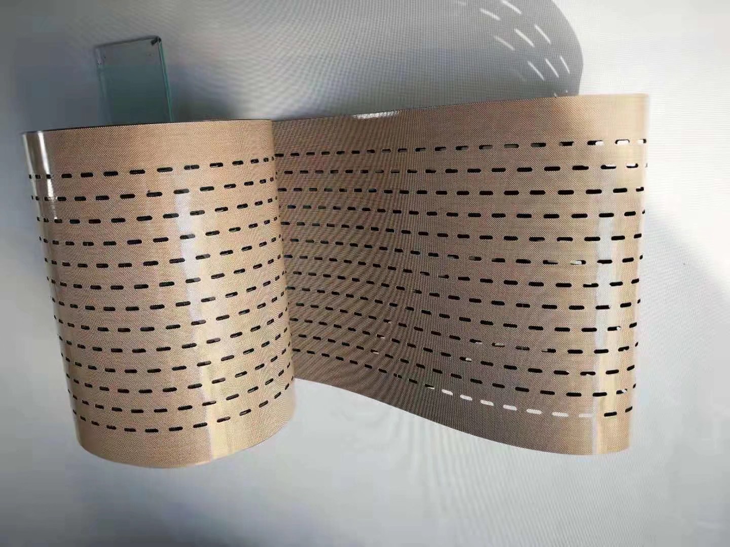 4、特氟龍輸送帶尺寸穩(wěn)定性好(延伸系數(shù)小于5‰)、強(qiáng)度高。具有良好的機(jī)械特性。